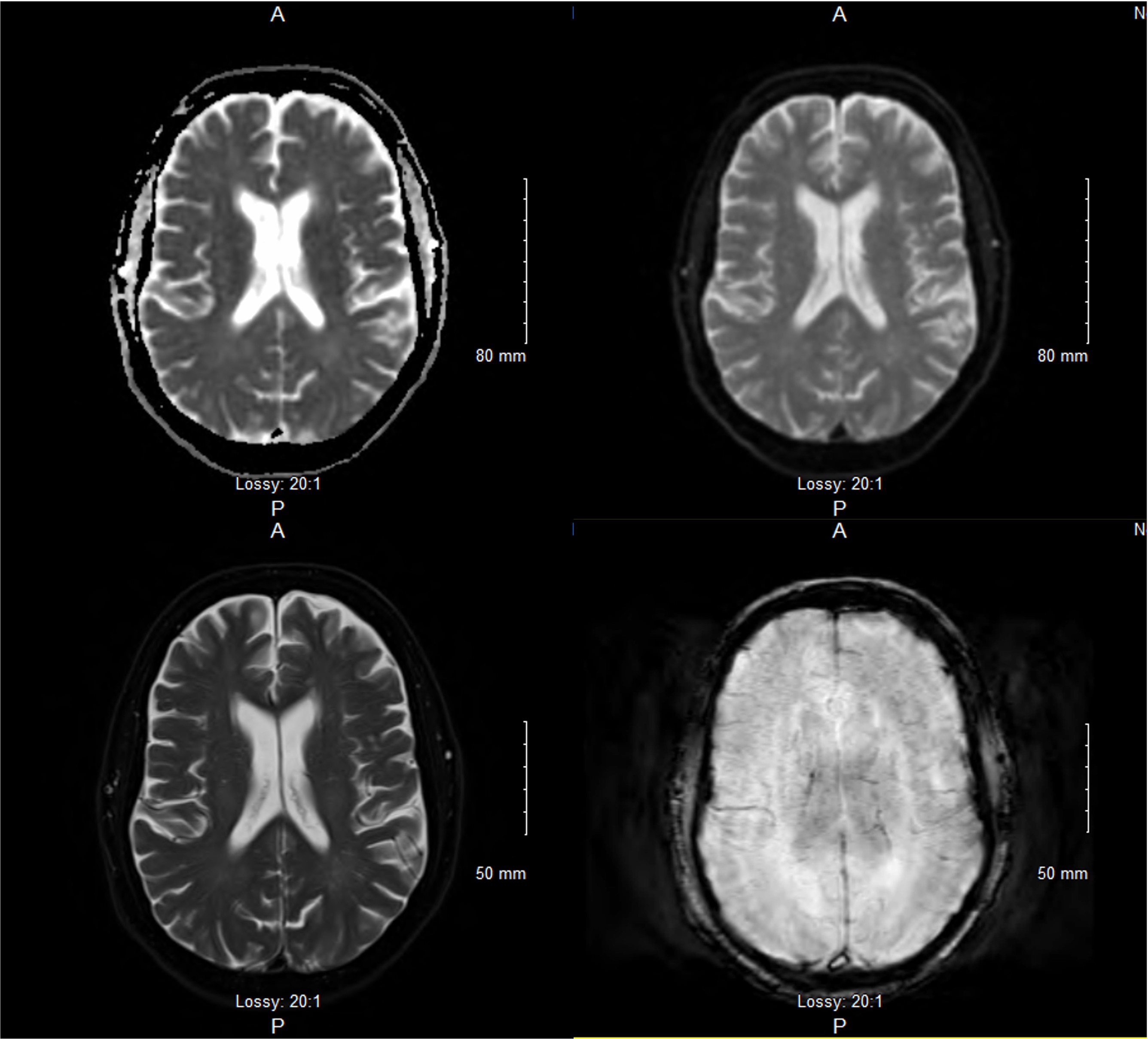 Figure 2. Brain MRI, transverse view, showing only mild chronic microvascular changes